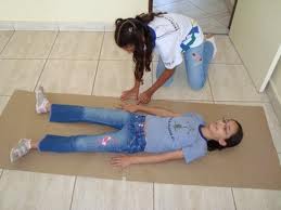 escolha 01 colega, que deverá deitar sobre a(s) folha(s) de papel madeira e